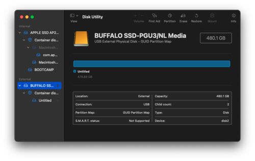 ここを参考に gashubq.com使用した外付けSSD BUFFALO USB3.1Gen1 ポータブルSSD 480GB 日本製 PS5/PS4(メーカー動作確認済) 耐衝撃・コネクター保護機構 SSD-PG480U3-B/NL https://www.amazon.co.jp/dp/B07S9X55BXDisk utilityで最上位改装をGUID Partition …
